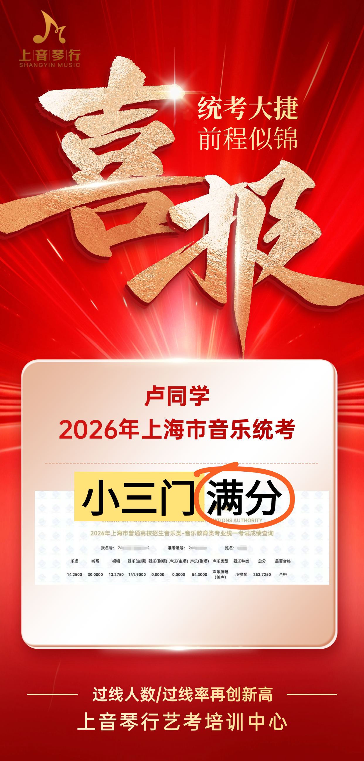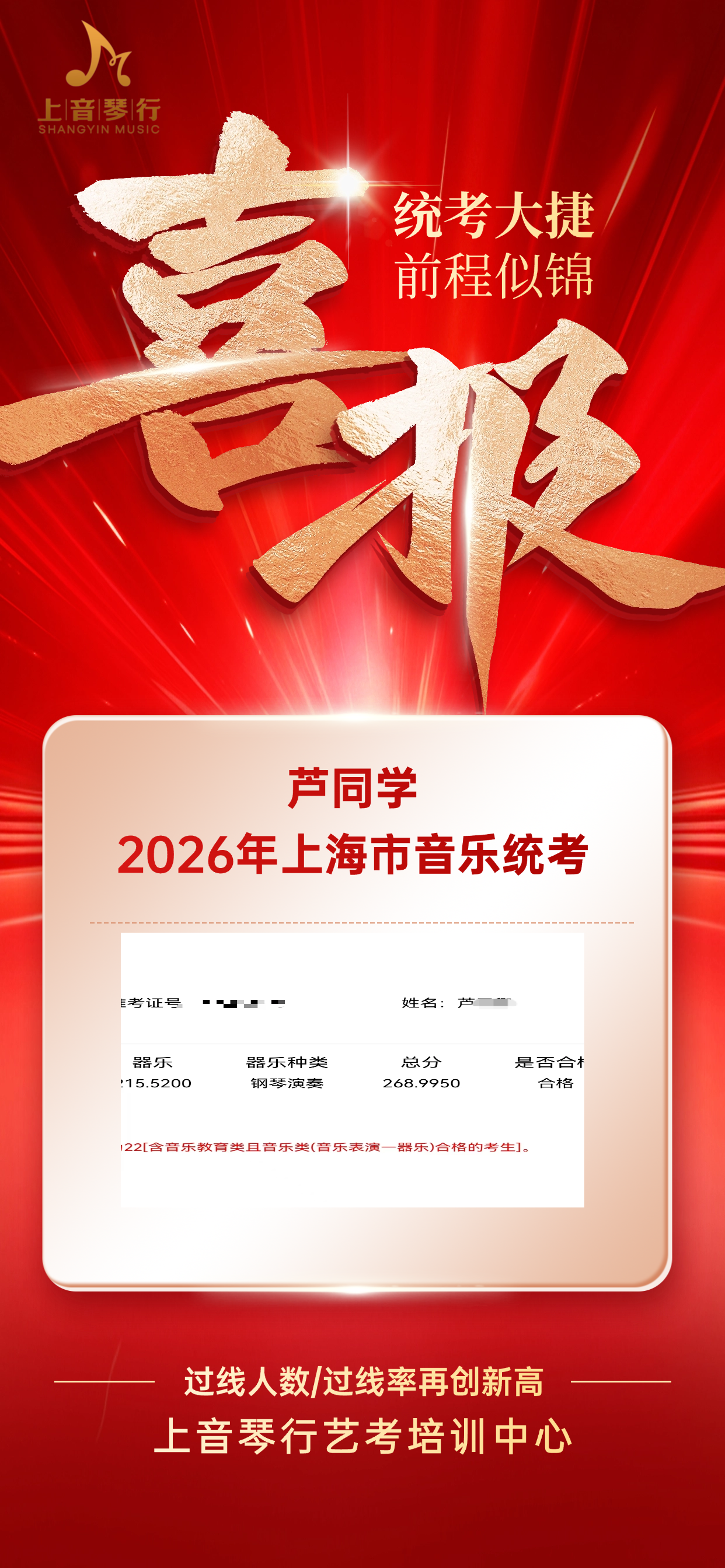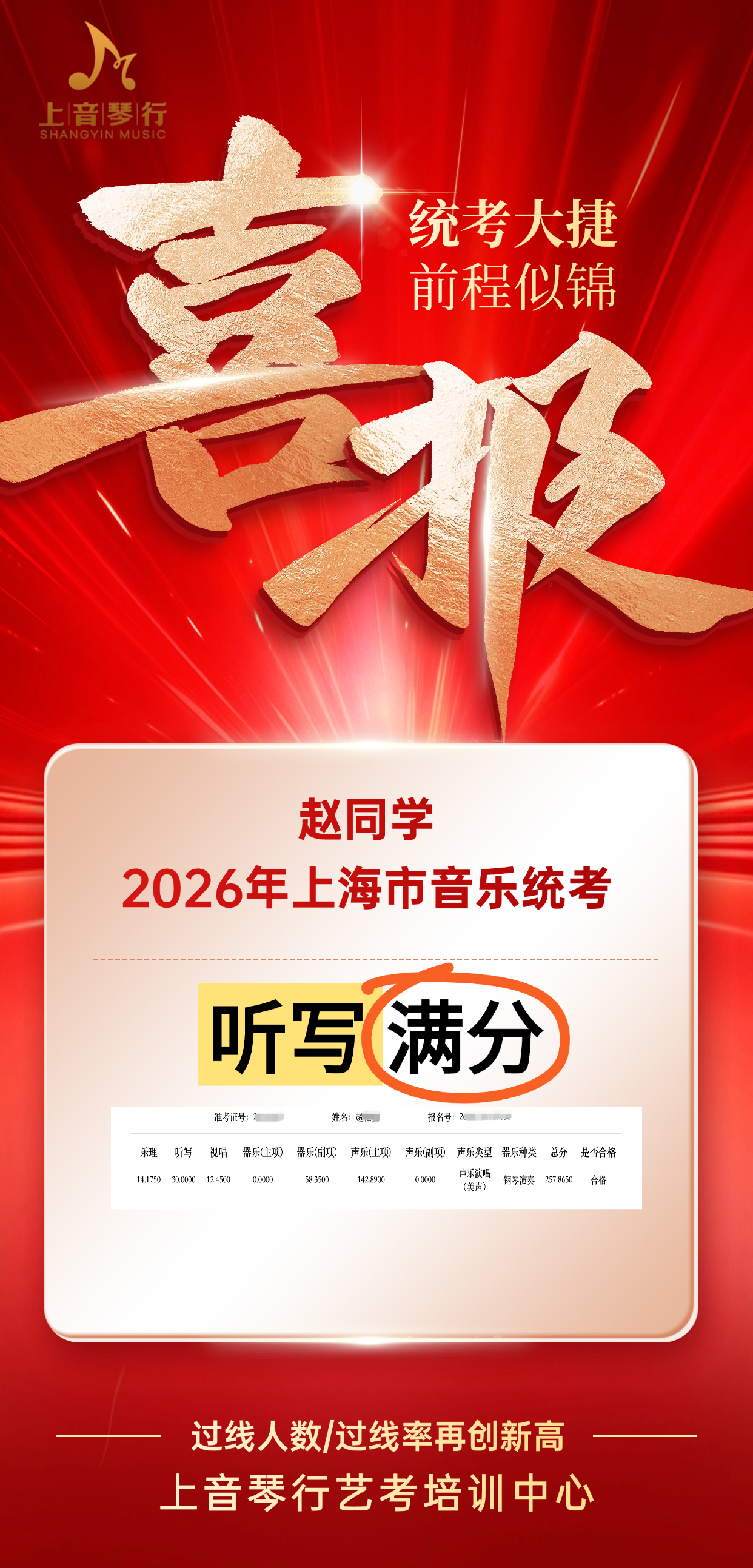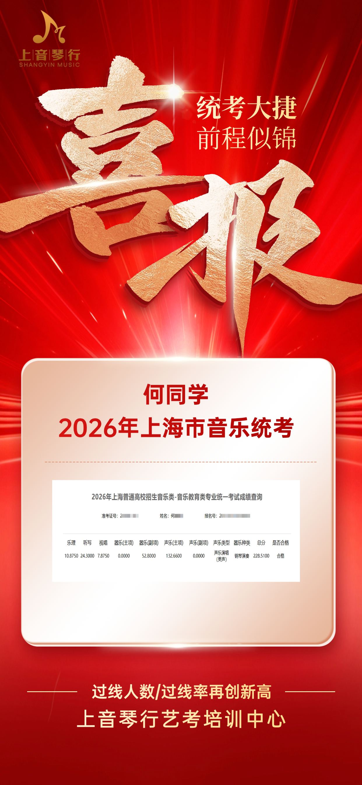 上音琴行艺考培训中心|统考大捷,战绩速报