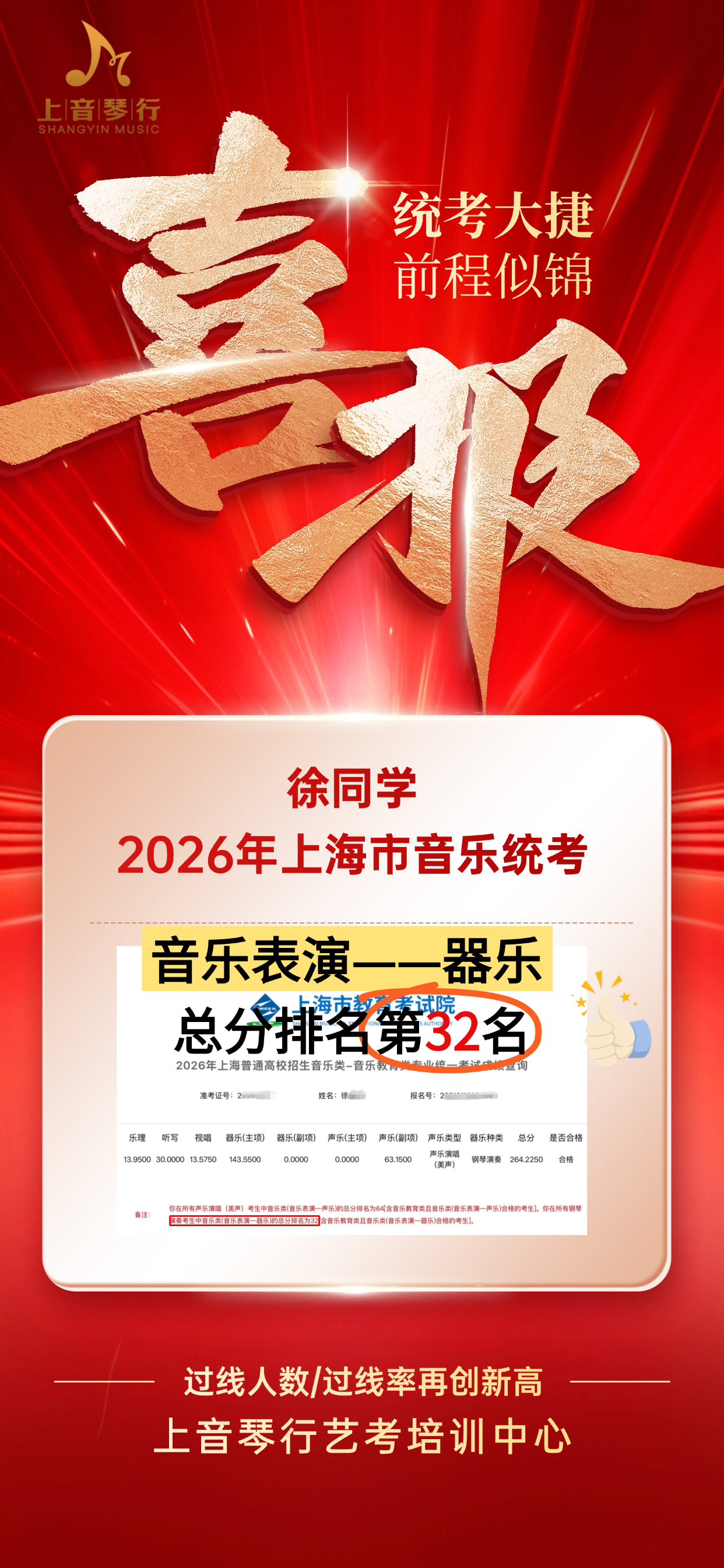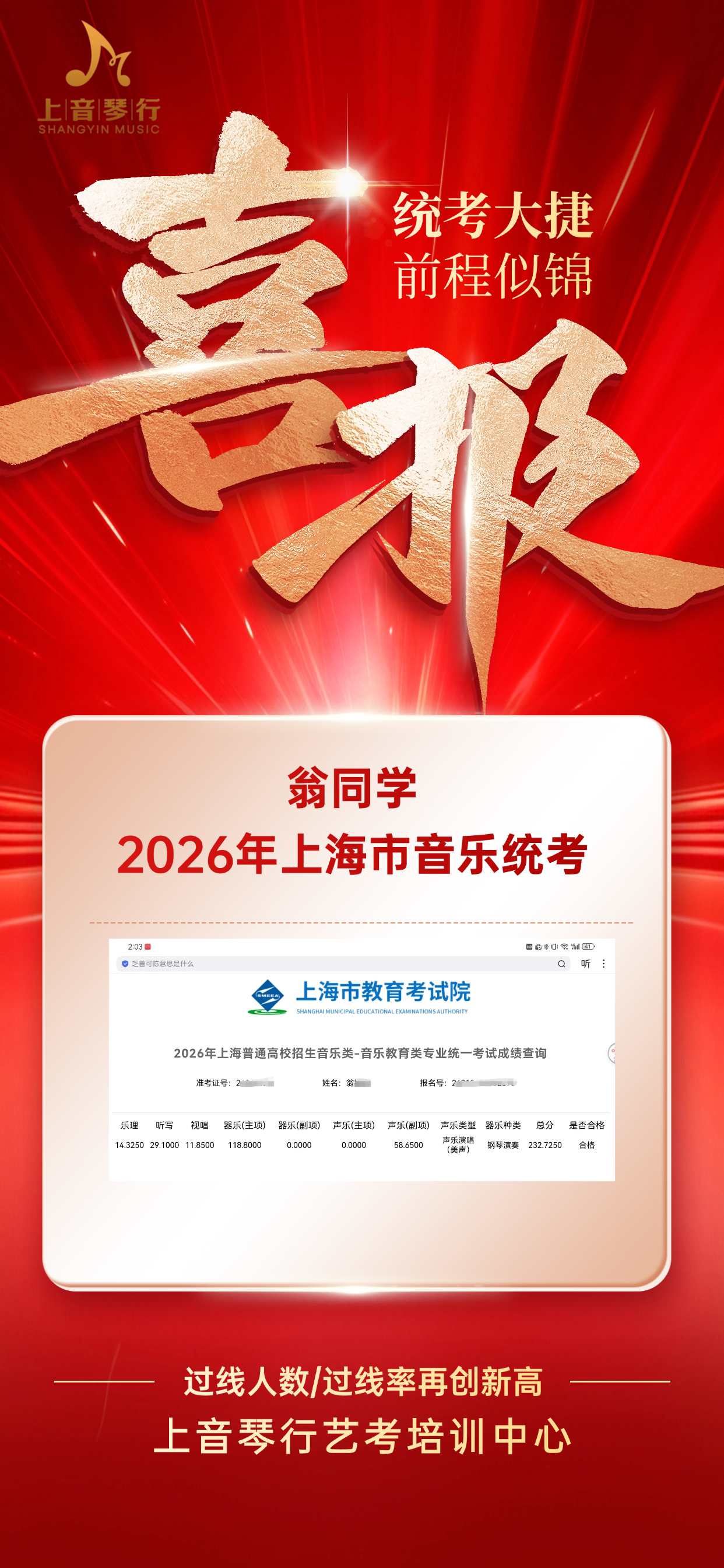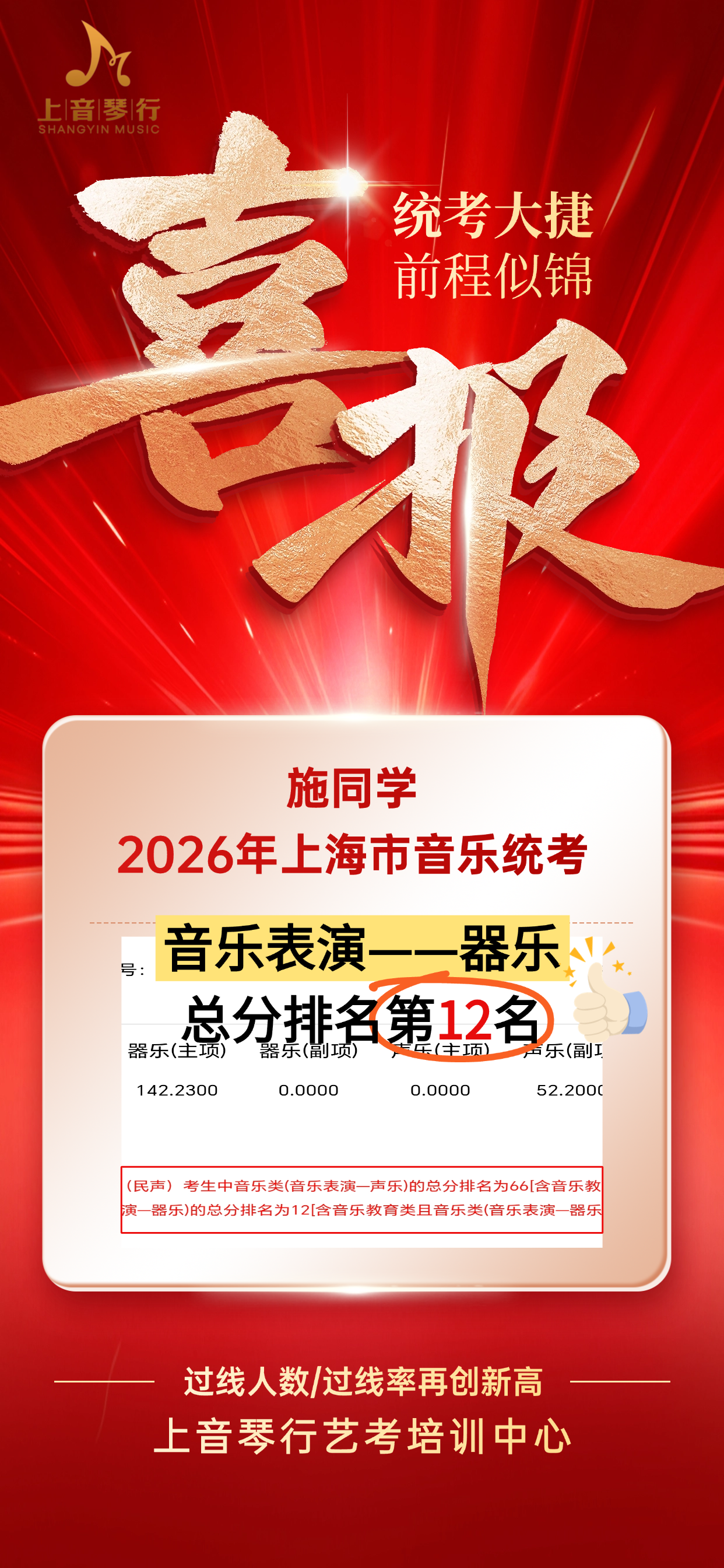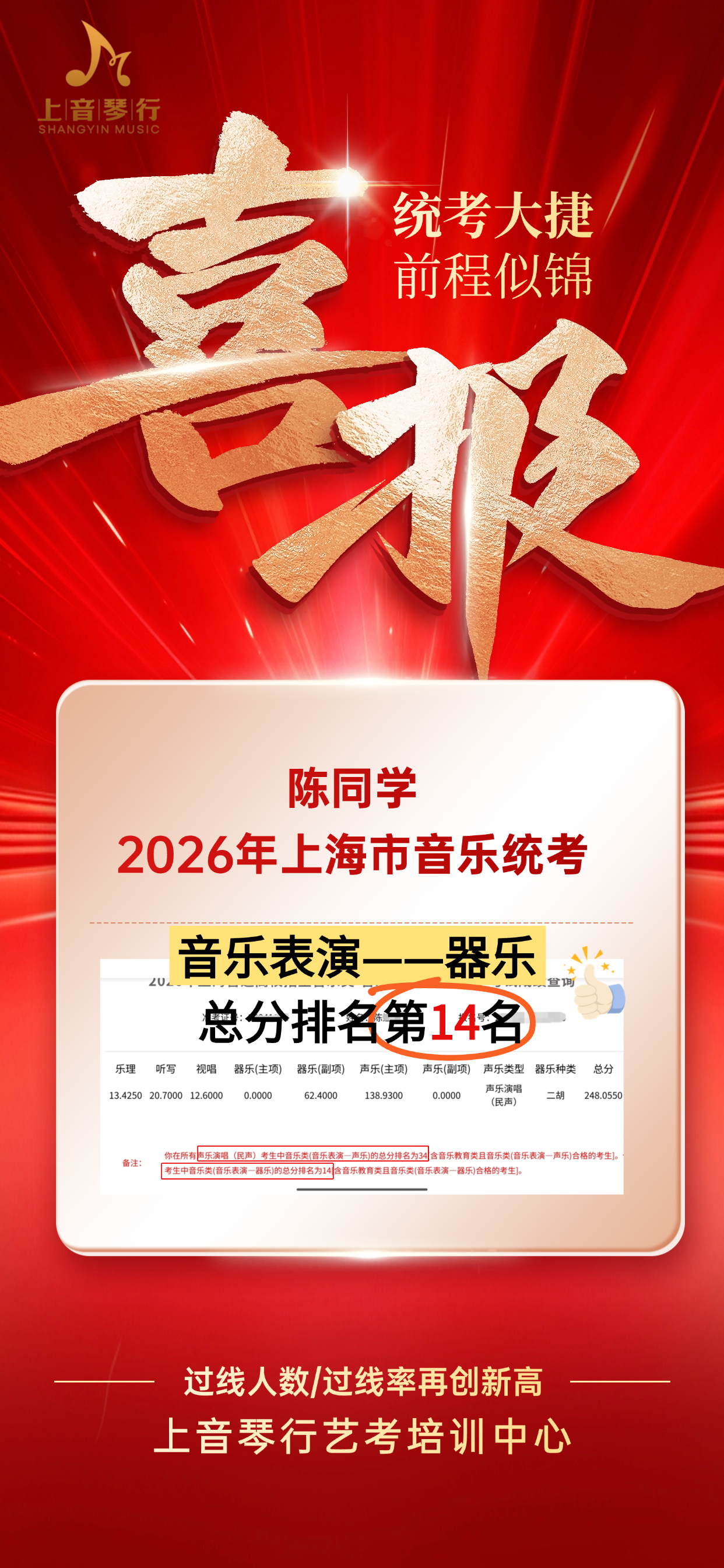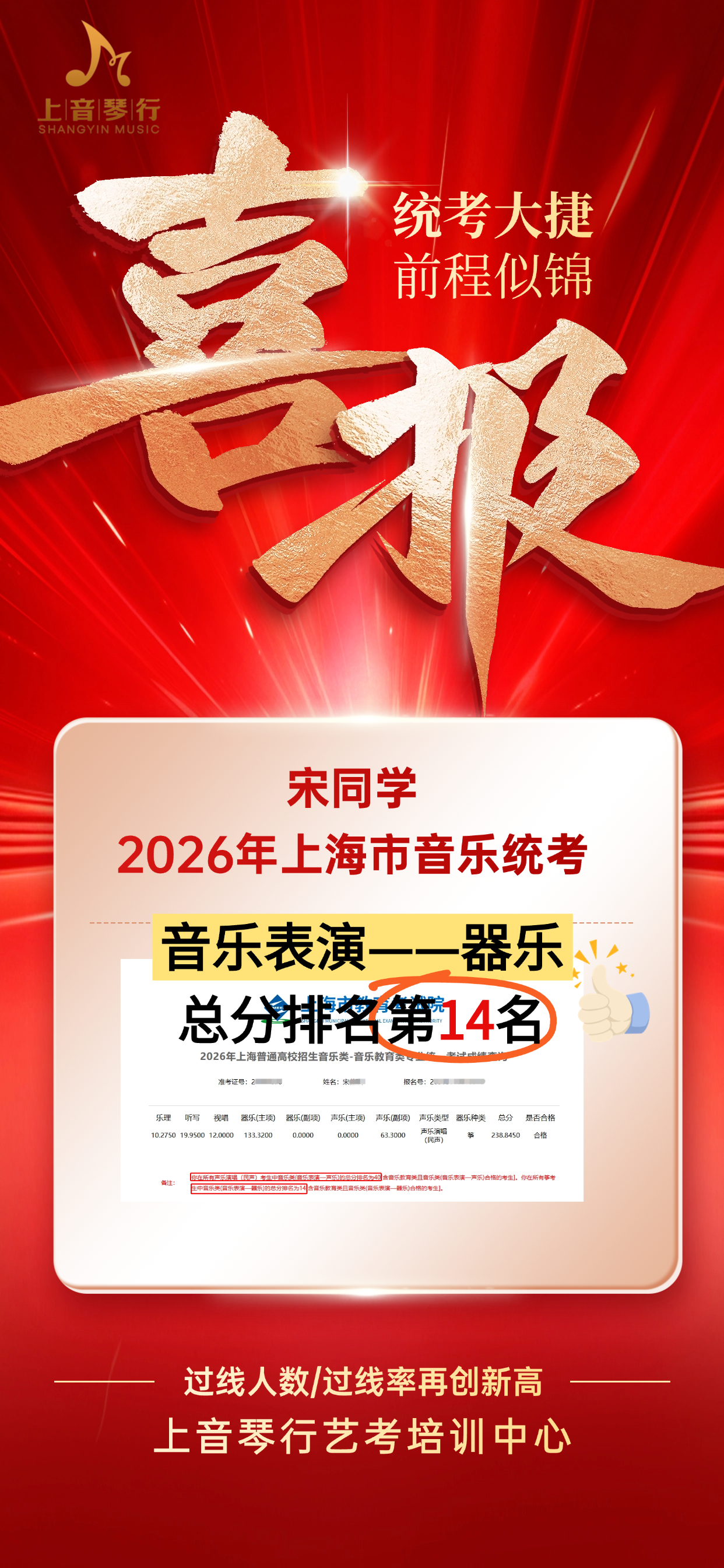 上音琴行艺考培训中心|统考大捷,战绩速报
