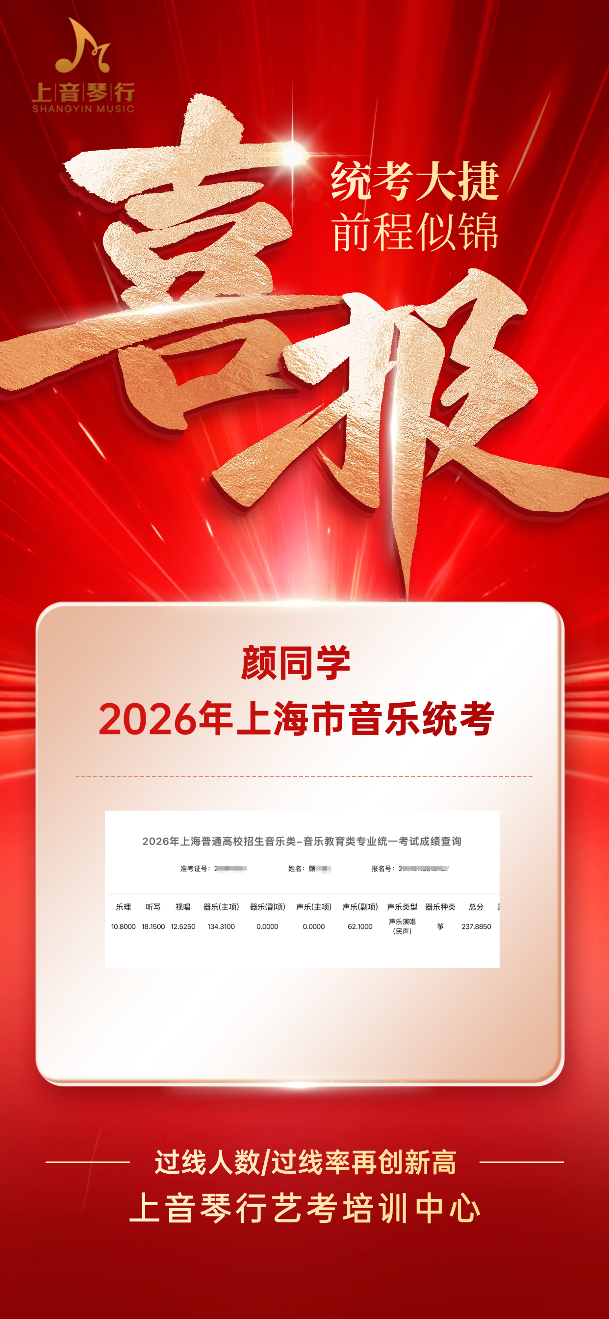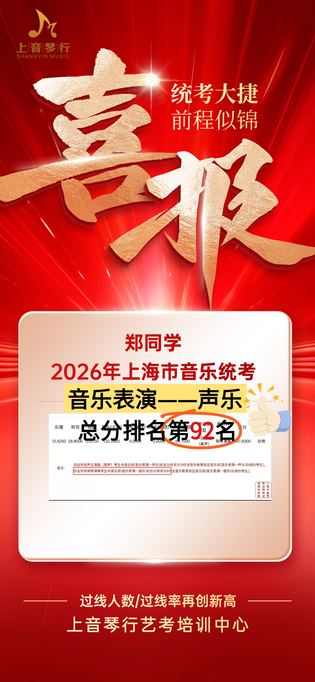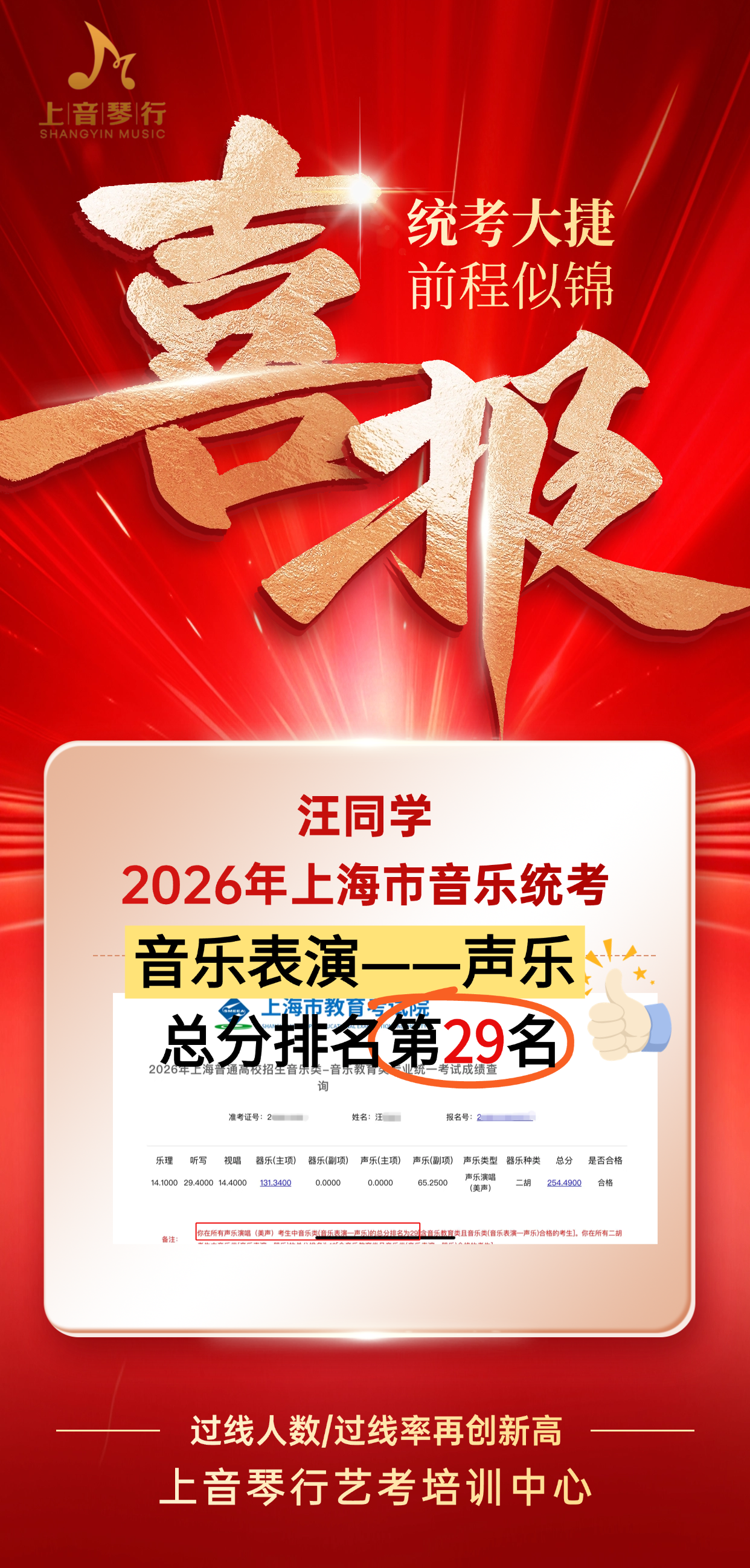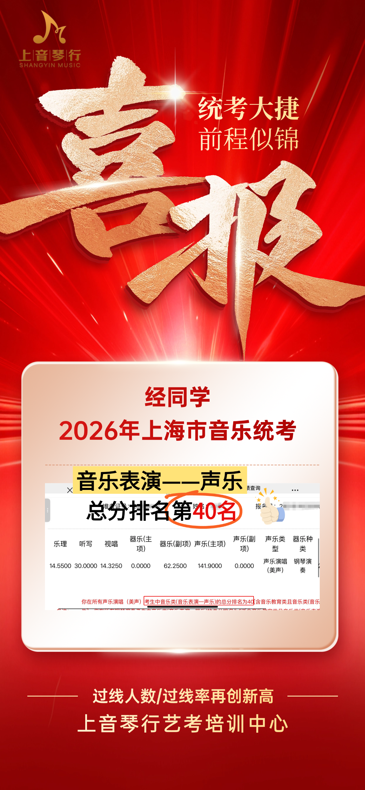 上音琴行艺考培训中心|统考大捷,战绩速报